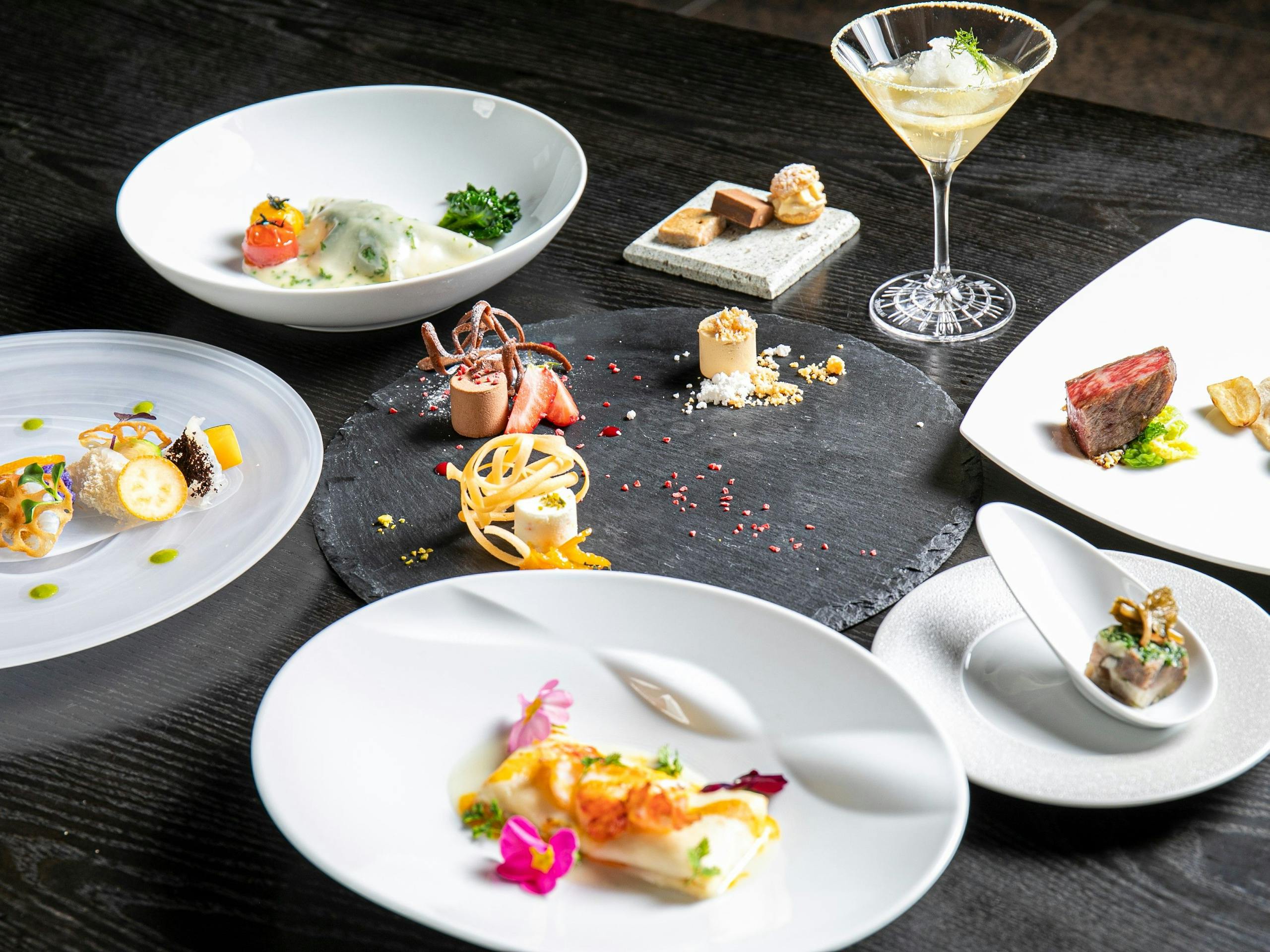 食事は地元、伊豆の食材を活かしたフレンチを敷地内のレストランでいただける。