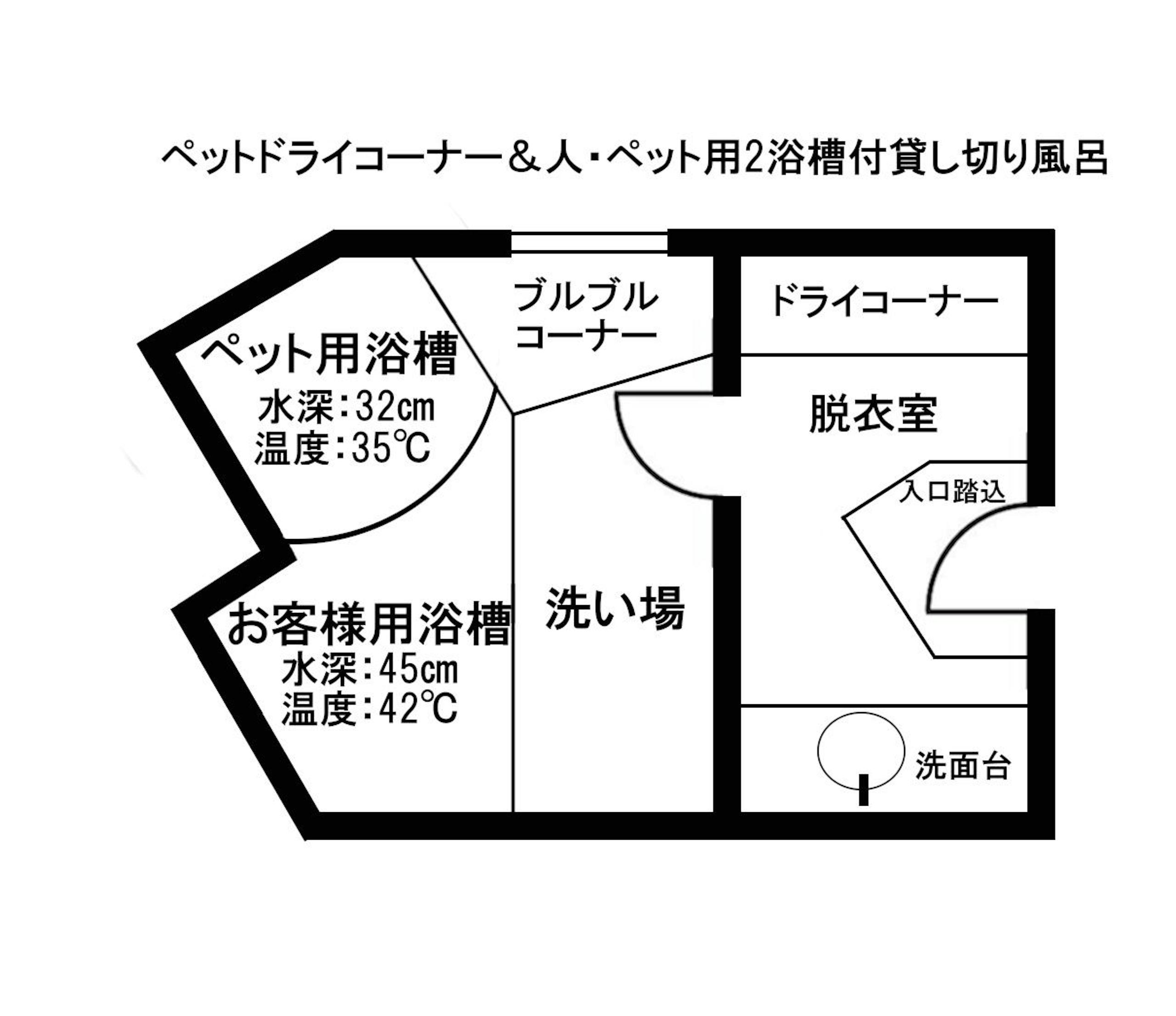 ペット専用露天風呂や、まさか?のペットと一緒に入れる貸切風呂もある。
