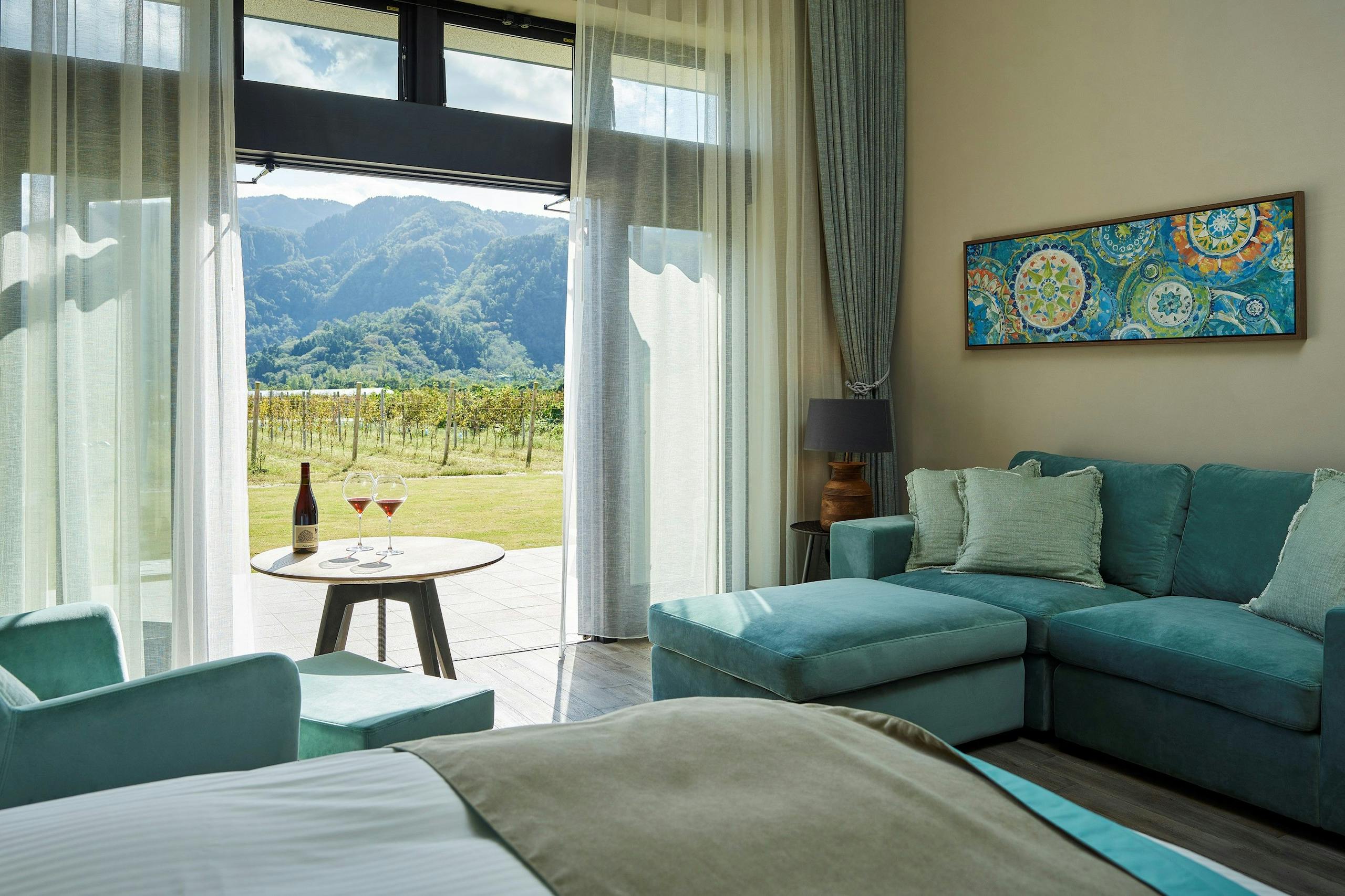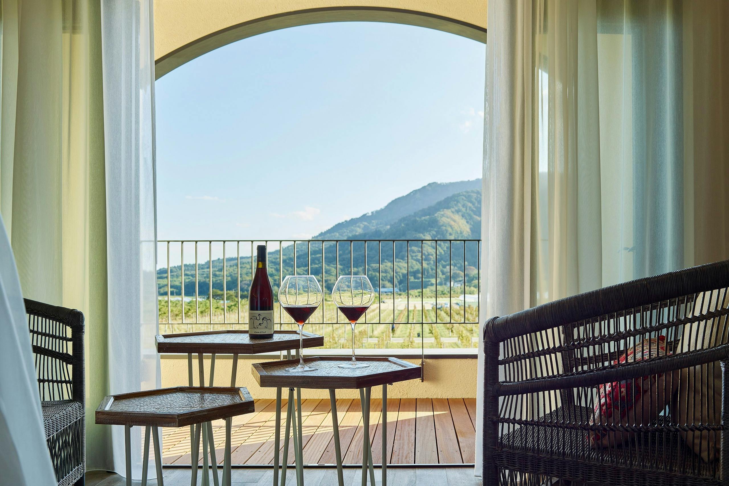 葡萄畑を眺めながら料理やワインをいただいたり、1日ワインづくしで泊まれるところはないかな。