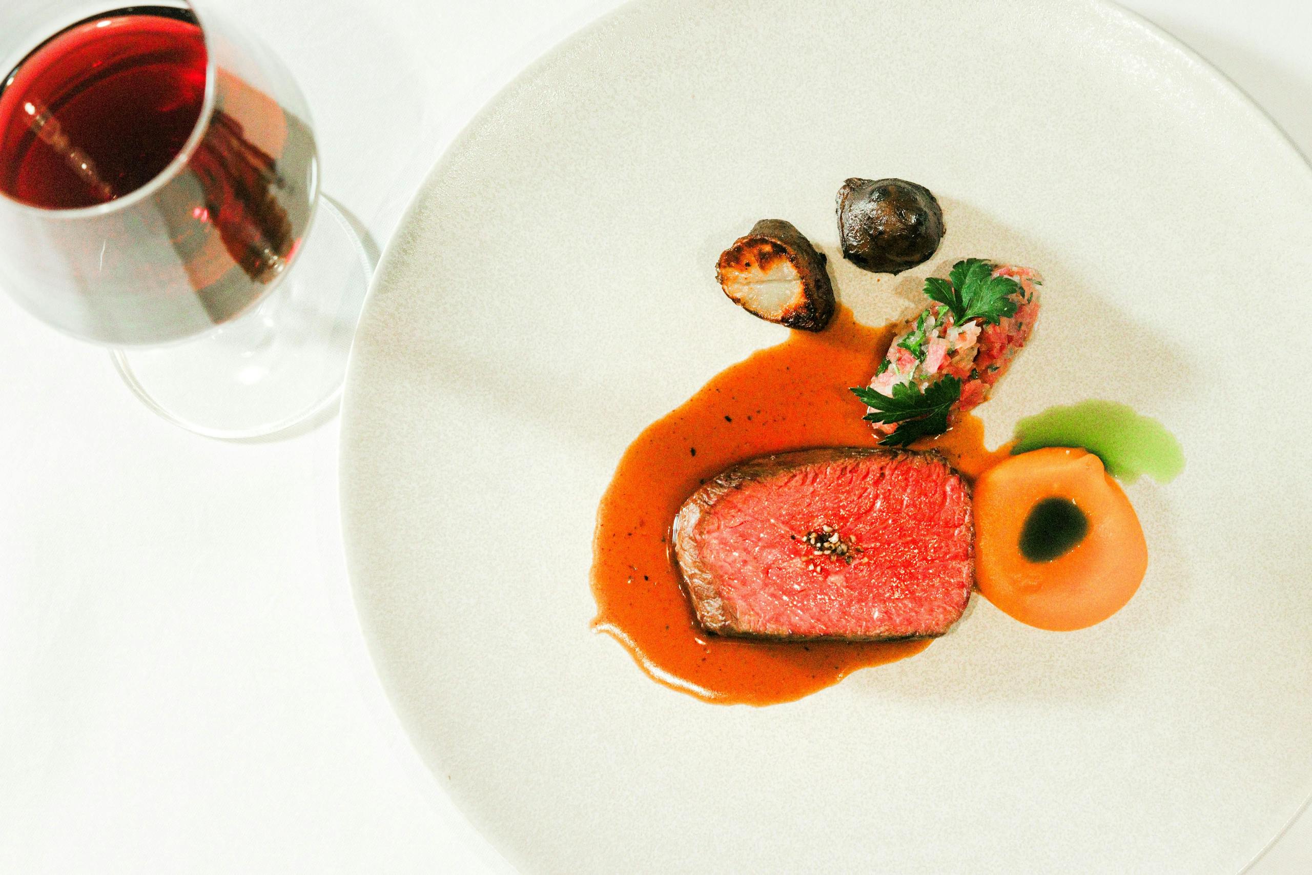 引用元 一休.com ディナー 葡萄の葉で燻した牛肉のロースト