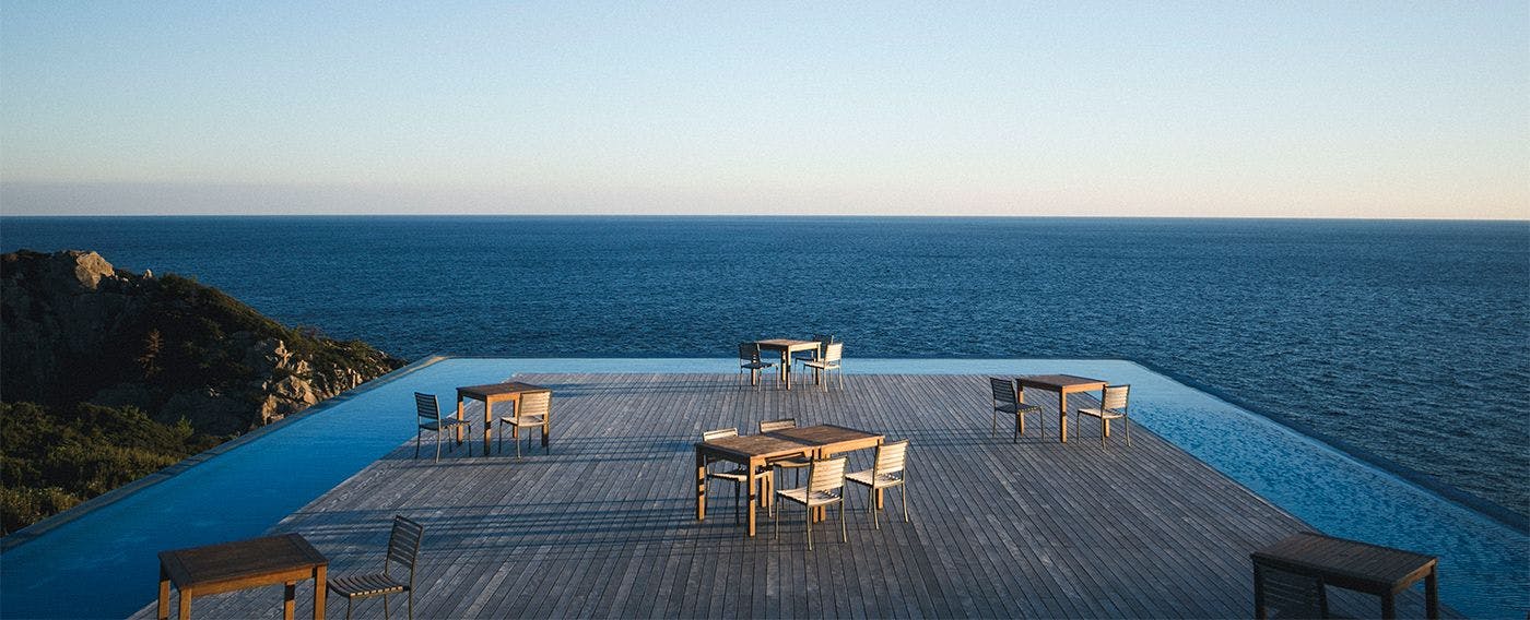 インフィニティプールに浮いているかの様な、開放的なテラス。